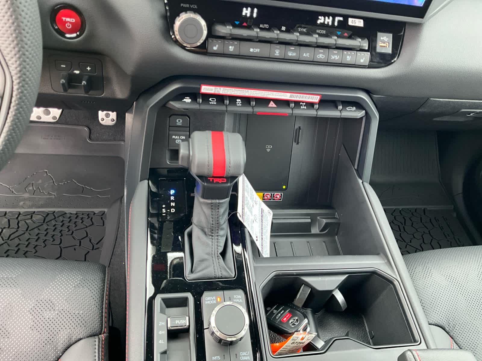 - TRD red-striped leather-wrapped shift knob