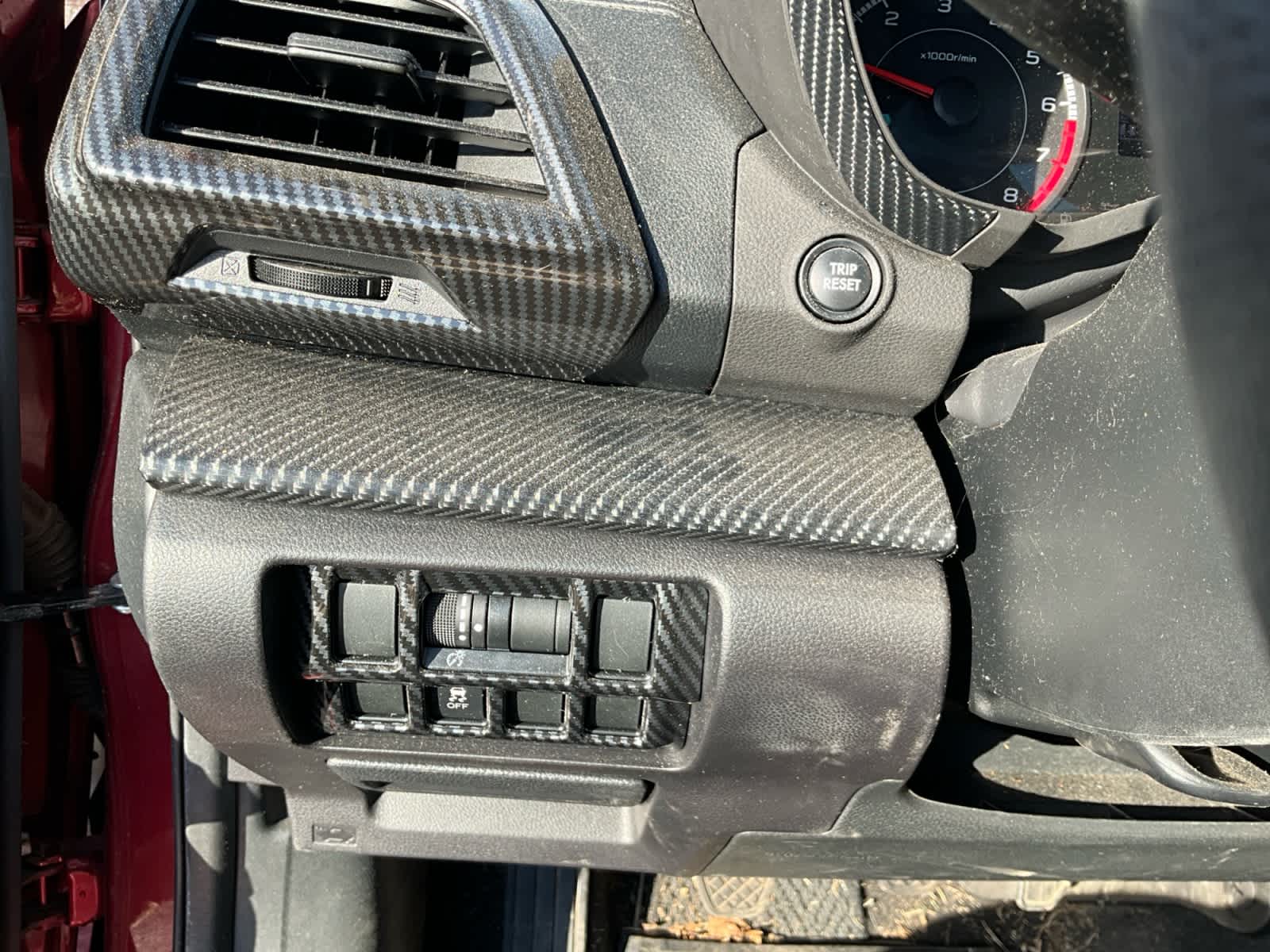 - Simulated carbon fiber instrument panel insert